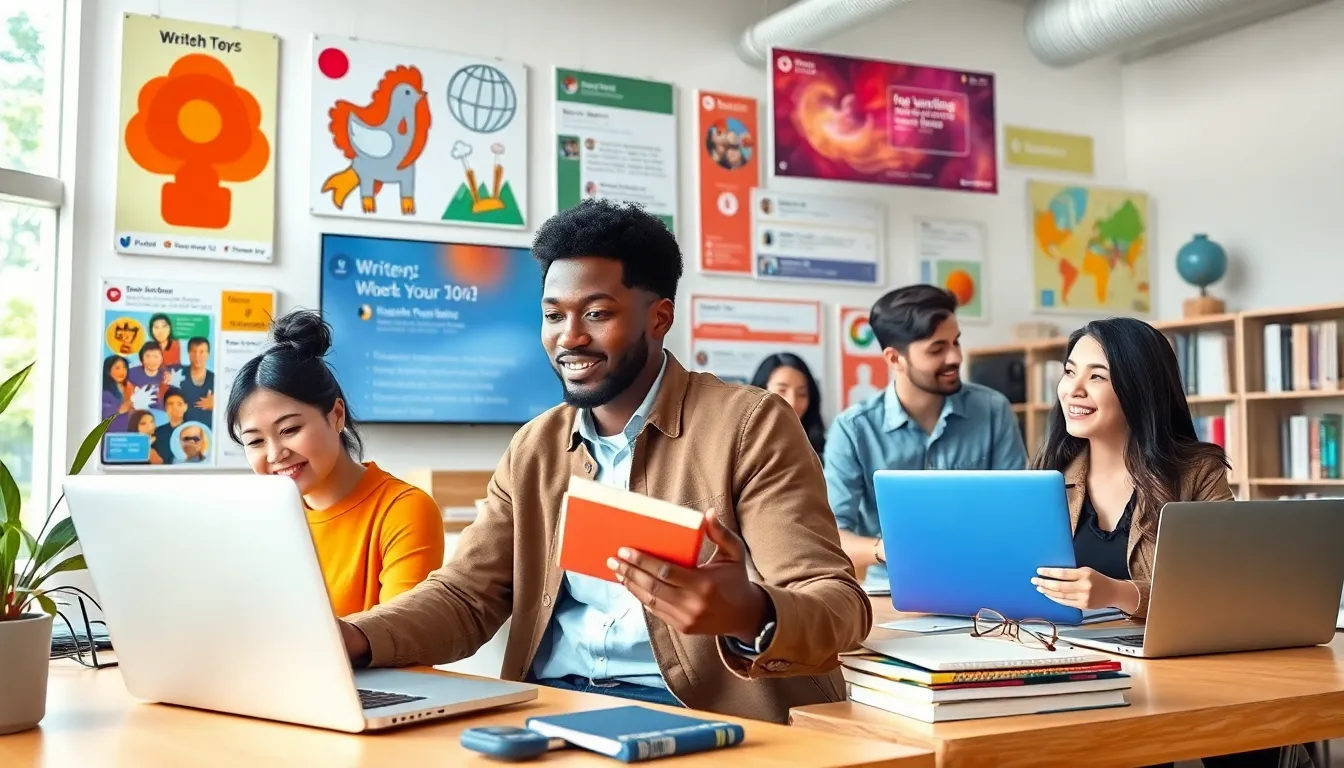 diverse group collaborating in a modern workspace, focused on creativity.