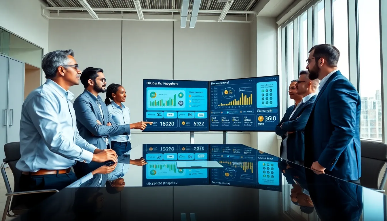 professionals discussing digital solutions in a modern office